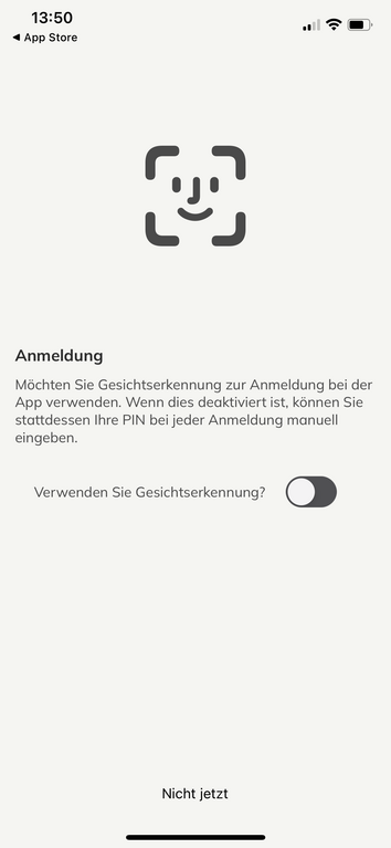 Falls gewünscht, können Sie statt Ihres PIN-Codes auch die automatische Gesichtserkennung Ihres Handys zum Entsperren der App nutzen.