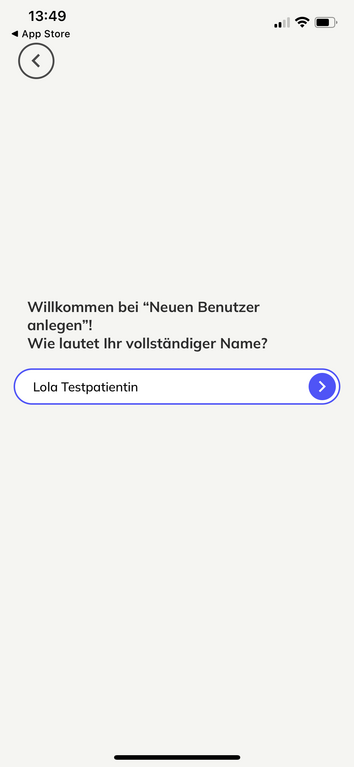 Bitte geben Sie Ihren Namen an. Im Bedarfsfall können Sie diesen zu einem späteren Zeitpunkt unter Menü / Profil ändern.