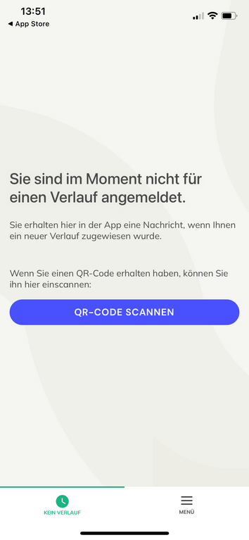 - Nach erfolgreicher Registrierung müssen Sie Ihr Profil mit dem passenden Behandlungsverlauf am Uniklinikum Erlangen verknüpfen. Ganz am Ende dieser Seite finden Sie Links aller angebotenen Behandlungsverläufe oder scannen dort den entsprechend hinterlegten QR-Code.