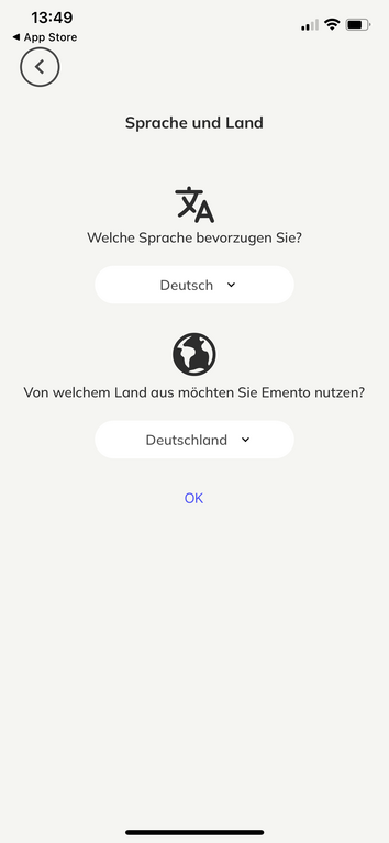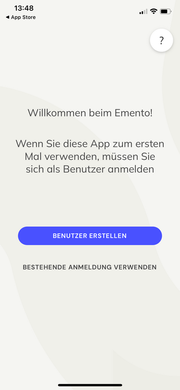 - Installieren Sie die App “Emento Digital Care Guide”. Entweder über die QR-Codes oder den passenden Link für Ihren App-Store (Android | iOS).